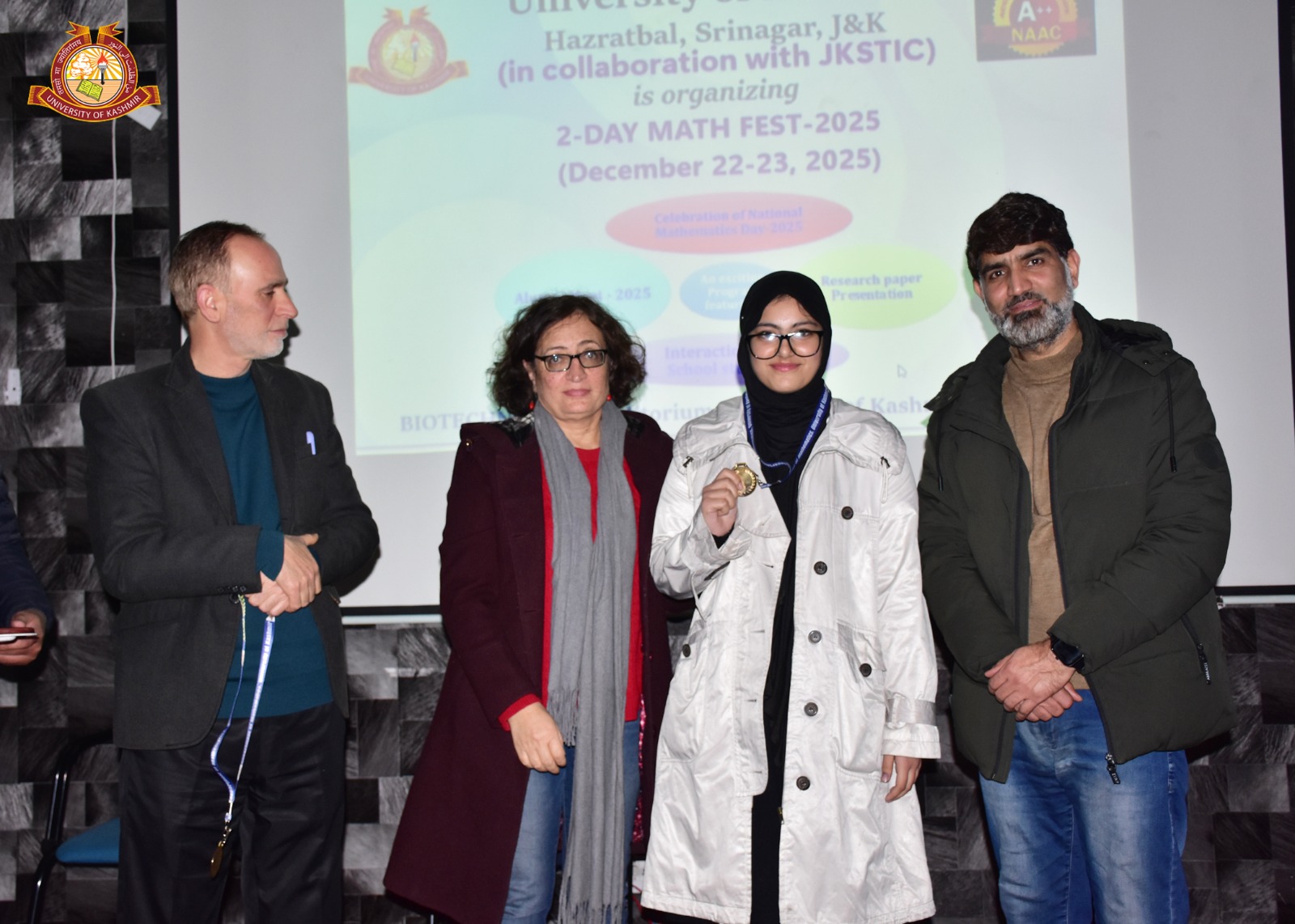 Department of Mathematics University of Kashmir Srinagar in collaboration with Jammu and Kashmir Science Technology and Innovation Council has organized2-Day MathFest-2025 and National Day of Mathematics-2025 during December 22-23,2025.
